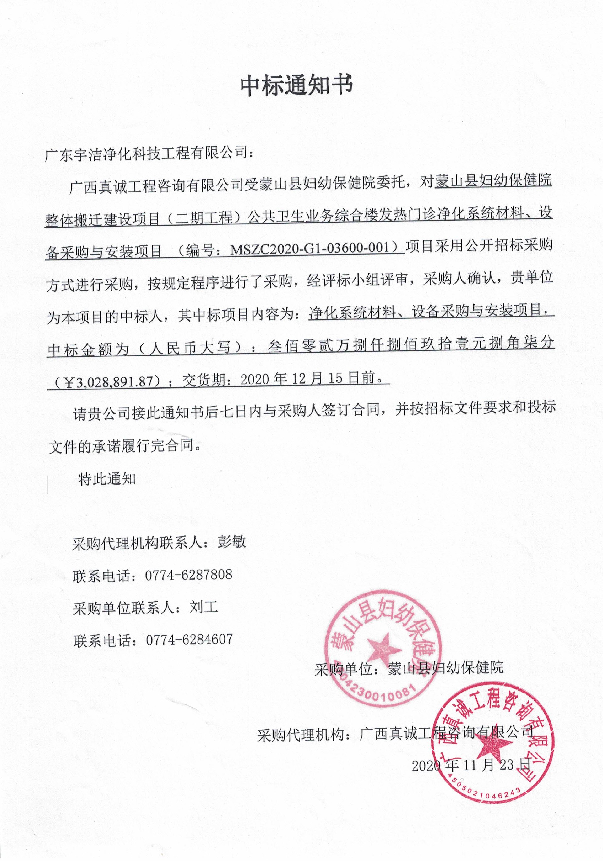 中標通知書